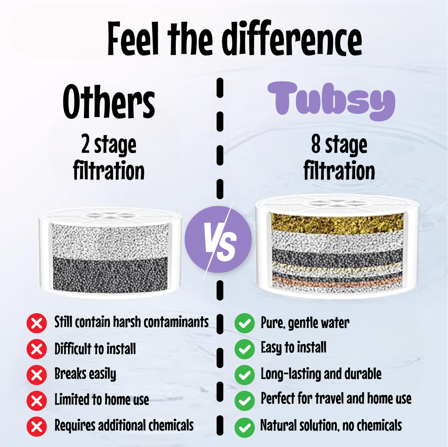 We didn’t just upgrade your bath—we redefined what a filter should do. Here’s how Tubsy stacks up.